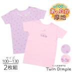 女の子 キッズインナー 綿100 半袖 (女児厚地半袖丸首シャツ マカロンねこ柄 2枚組 100/110/120/130 (2535)