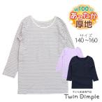 あったかインナー 肌着 女の子 綿100% ネイビー ホワイト パープル (あったか厚地 長袖 ボーダー総柄 140/150/160 (1647/1649/1651)