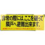 【出荷目安】翌営業日以内 【内容量】1枚 【材質】ポリエステルPET 【色】下地:イエロー 文字:黒と赤 【文字内容】非常の際には、ここを破って隣戸へ避難できます。ここには物を置かないで下さい。 【取付方式】ステッカー 【仕上】シルク印刷(表面:オーバーコート+ラミネート加工) 【寸法(高さH×幅W)(mm)】150×400 【裏面】粘着テープ付 【用途】バルコニーの隔て板へ貼・・・