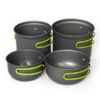アルミクッカー4点セット (クッカー大・小、フタ大・小) 収納袋付き ACC-4 キャンプ レジャー アウトドア 小物 ソロキャンプ 2-3人用 ライスクッカー 食器 米